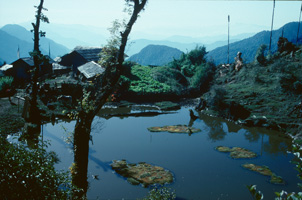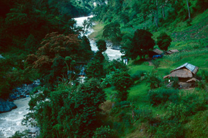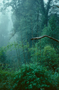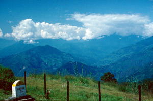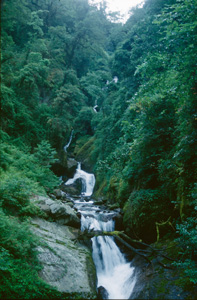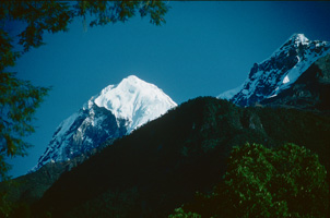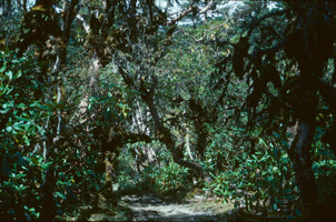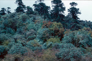 In grösserer Höhe (hier ungefähr 4000 m)wird der Rhododendron niedriger und buschiger, wie Latschen in den Alpen
