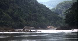 Am nÀchsten Tag fahren wir mit den gleichen Booten weiter. Die Berge werden niedriger, die Stromschnellen weniger heftig. Vor dem alten Ort Muang Ngoy
