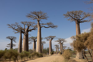 Baobabs sind die Charakterbäume Madagaskars und kommen hier in 8 (oder 9) verschiedenen Arten vor, 6 davon gibt es nur hier, die anderen auch in Afrika und in Australien.