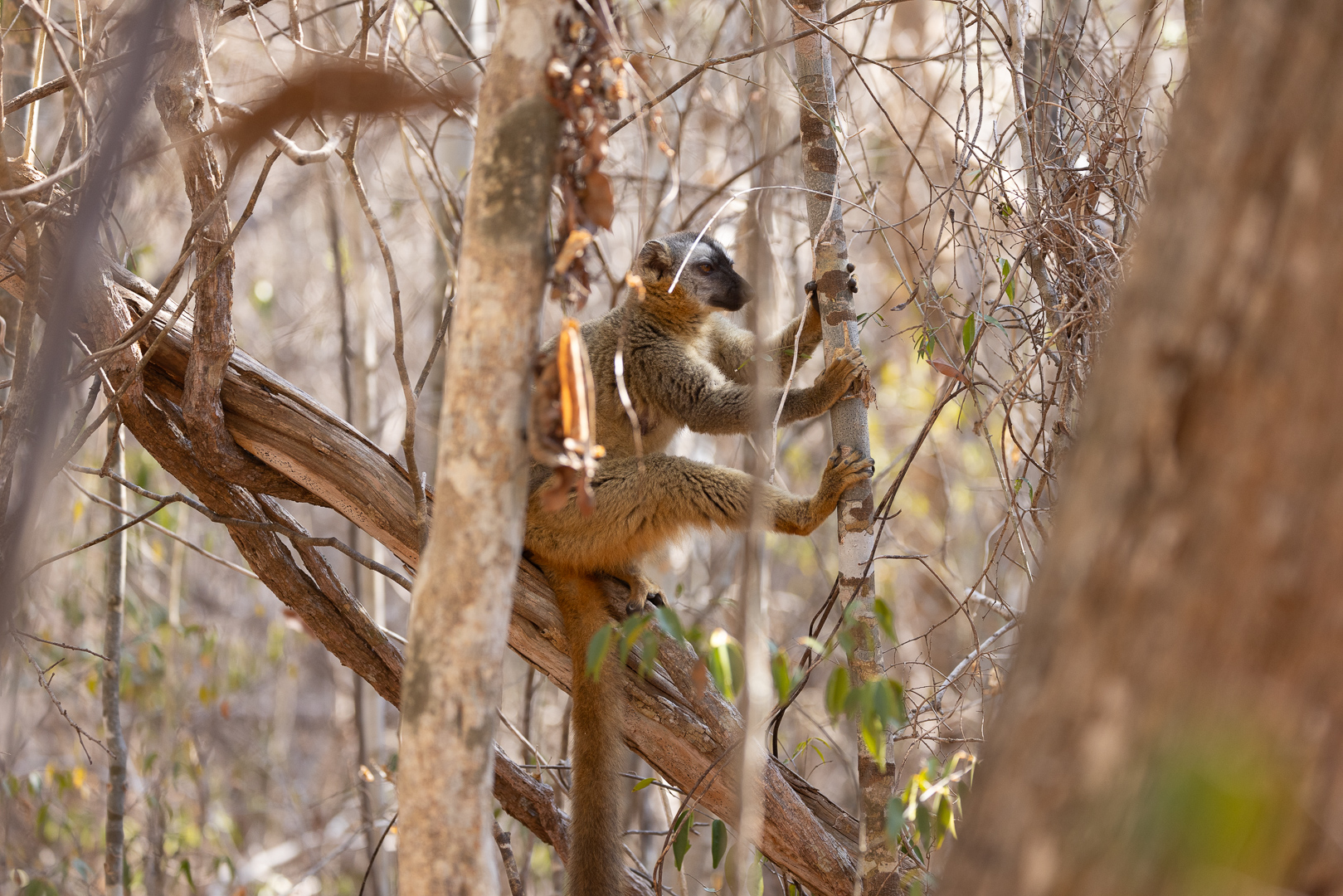 Im Kirindy-Nationalpark findet man tropischen Trockenwald mit einer reichhaltigen Tierwelt. Ein erheblicher Anteil der hier lebenden Tiere sind nachtaktiv, was eine Nachtwanderung förmlich herausfortdert (mit Führer selbstverständlich!). Wenn man Glück hat, kann man hier auch das grösste Landraubtier Madagskars, den Fossa sehen und wenn man noch mehr Glück hat (und nicht zu viel vor die Kamera laufende Mit-Touristen), kann man ihn auch fotografieren (was mir nicht gegönnt war, zumindest nicht in vorzeigbarer Qualität).