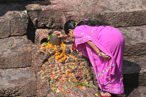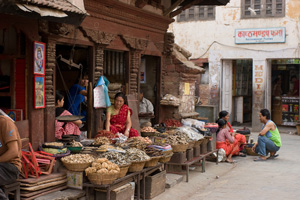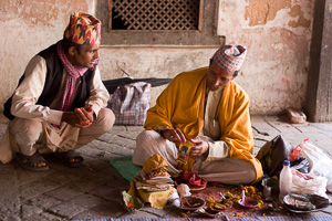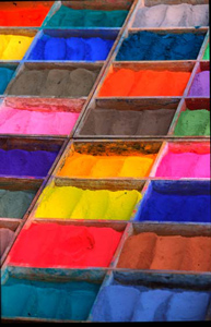 Farbpulver an einem Verkaufsstand für Opfergaben
