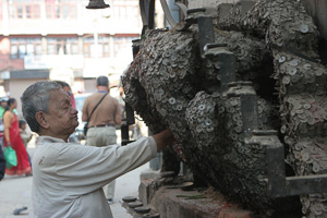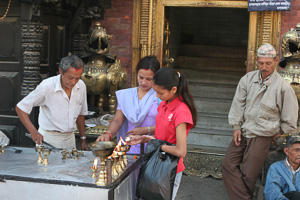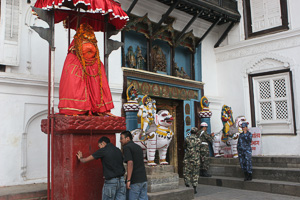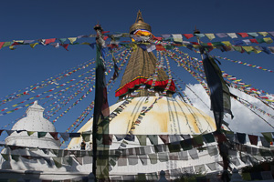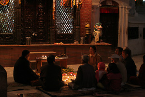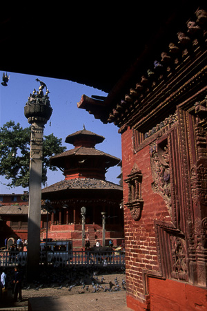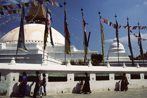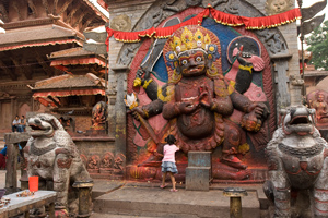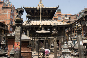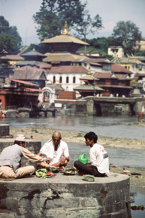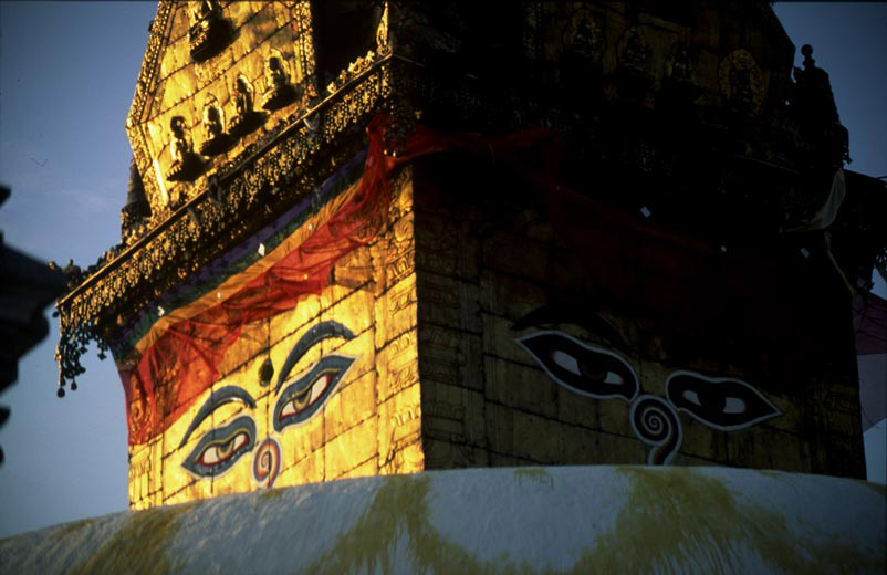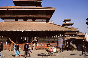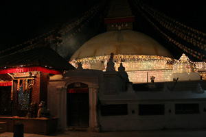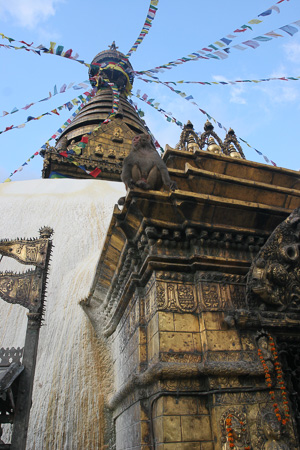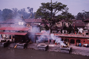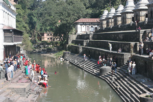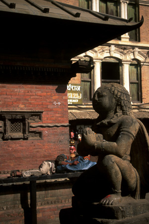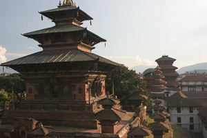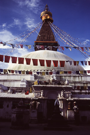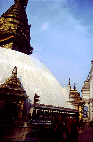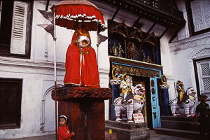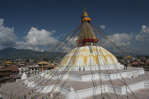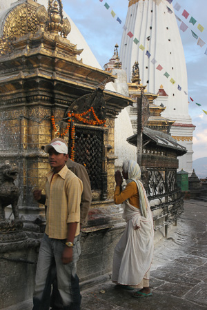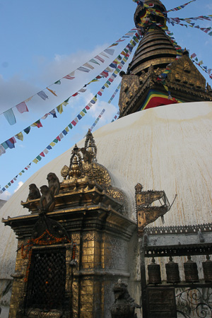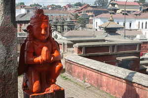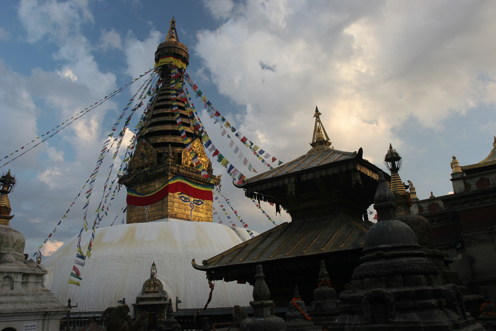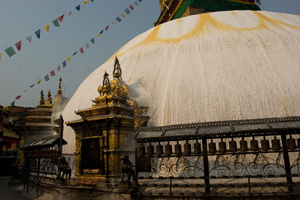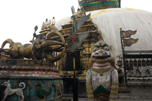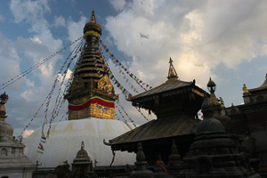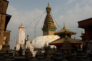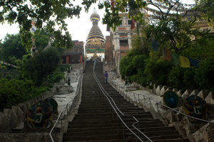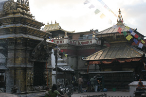 Kathmandu liegt in einem Tal, dessen Talgrund der Boden eines ehemaligen Sees ist, deswegen ist der Untergrund auch tonig, was für Töpferei und die vielen typischen Ziegelbauten seit alters genutzt wird. Der Hügel, auf dem der Stupa von Svayambunath liegt, bildete darin eine Insel. Nach der Legende wurde der See zum Abfliessen gebracht, als der Boddhisattva Manjushri mit seinem Schwert eine Kerbe in die südliche Begrenzung schlug - die Chobar-Schlucht. Im Tal liegen die grossen Königsstädte Kathmandu, Patan (= Lalitpur) und Bhaktapur, auf Anhöhen weitere Königsstädte wie Thimi oder Kirtipur