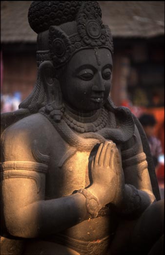 GarudaGaruda ist das Begleittier des Gottes Vishnu und steht normalerweise vor dessen Tempel. Er ist ein Mischwesen aus Vogel und Mensch