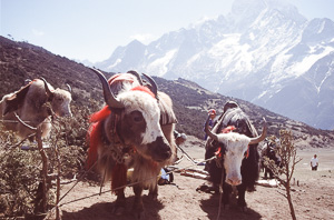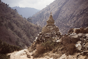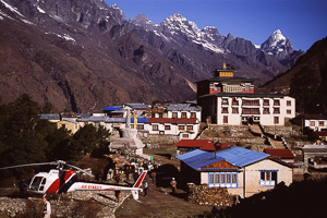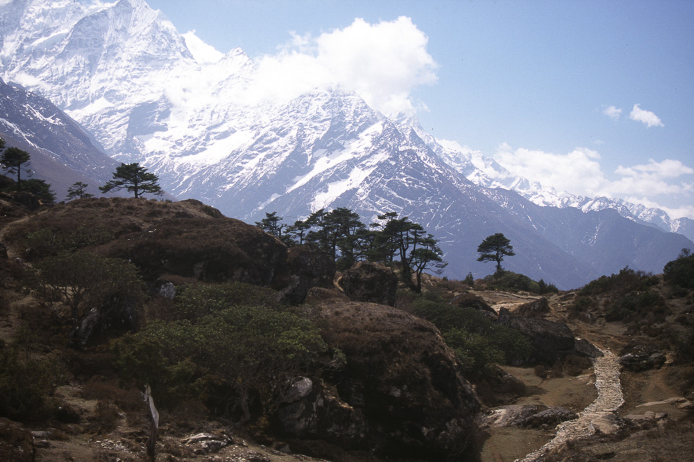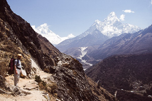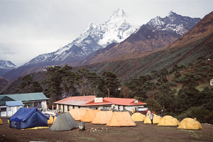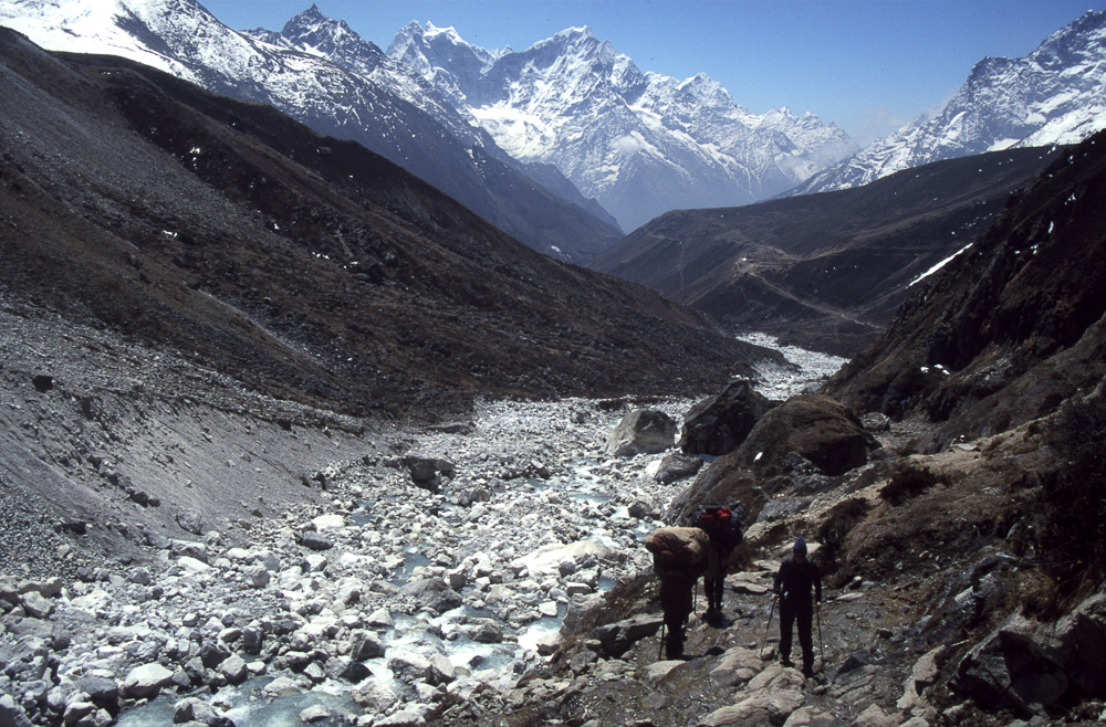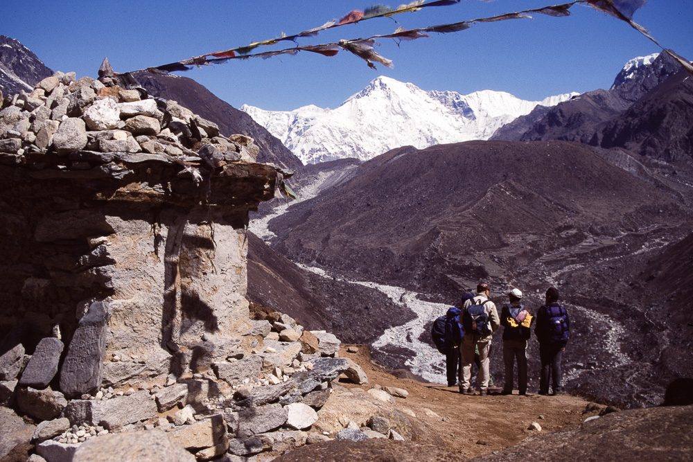 Die meisten Trekker findel man in Nepal in Khumbu, meist auf dem Weg Richtung Everest Basecamp oder auch Kala Pattar. Etwas weniger begangen ist der Abzweig nach Gokyo, obwohl der Gokyo Ri (5340m) einer der schönsten Aussichtspunkte ist. Die Anreise erfolgt in der Regel über den abenteuerlichen Flughafen von Lukla, über mehrere Tagesetappen kann man Lukla auch zu Fuss erreichen. Unsre Route 2003 führte klassisch von Lukla über Namche Bazar (3440 m) nach Gokyo und zurück über Pangpoche und das nach einem Brand wiederaufgebaute Kloster Tengpoche.
