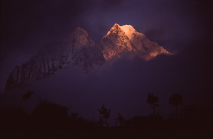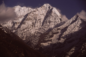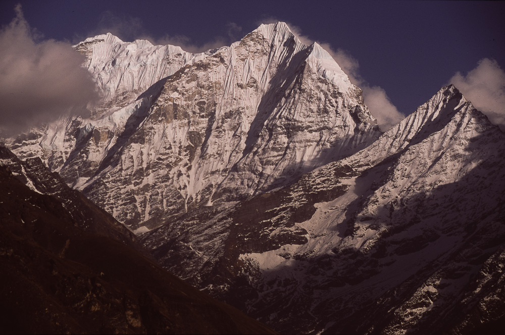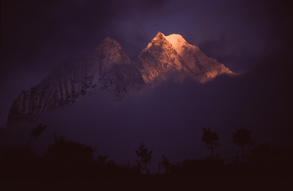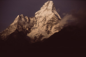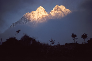 Blick auf den Thamserku bei Sonnenuntergang