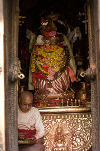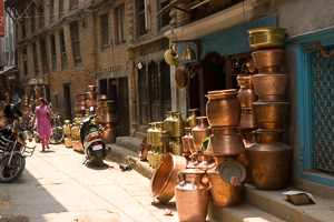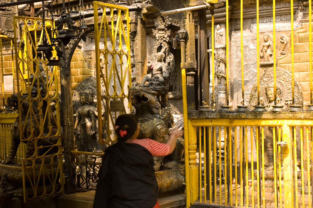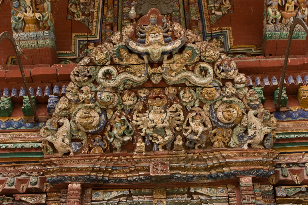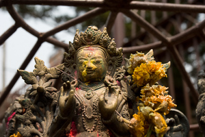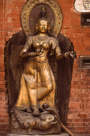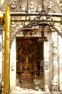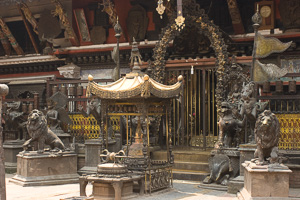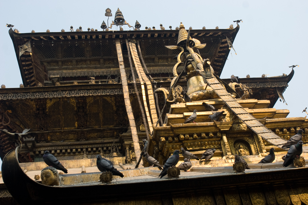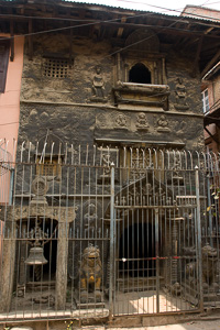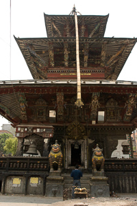Der Tempel ist der Tempel der Metallhandwerker, die Fassade ist komplett mit getriebenen Kupferplatten verkleidet. Er wurde beim Erdbeben 2015 schwer beschädigt und war 2022 noch nicht restauriert.