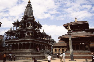 Patan (Lalitpur) ist die zweite der grossen Königsstädte im Kathmandu-Tal. Die moderne Stadt ist mit Kathmandu praktisch zusammengewachsen, der Fluss Bagmati trennt die beiden Städte. Die Königspaläste beider Städte sind in Luftlinie gerade einmal 7 km voneinander entfernt.
