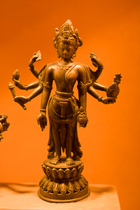 Lakshmi-Narayana, eine Darstellung von Vishnu und seiner Gefährtin Lakshmi in einer Person, rechts männlich, links weiblich