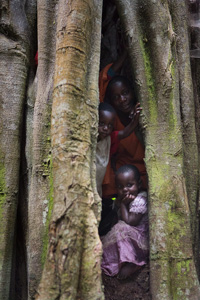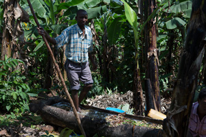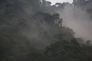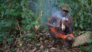 Die Region ist die Heimat der Pygmäen. Natürlich leben sie in den leicht zgänglichen Bereichen nicht mehr ihre ursprüngliche Lebensweise, ursprüngliche Dörfer liegen tief im Urwald, meist auf dem Gebiet der Demokratischen Republik Kongo. Aber sie haben am Rand des Natiobnalparks eine Art Museumsdorf gebaut, in das täglich die Einwohner aus ihrem eigentlichen Dorf kommen und den Touristen einiges von ihrer Kultur zeigen. Eine Touristin soll sich, so wurde uns berichtet, sich auch schon darüber beschwert haben, dass die Pygmäen zu gross seien.