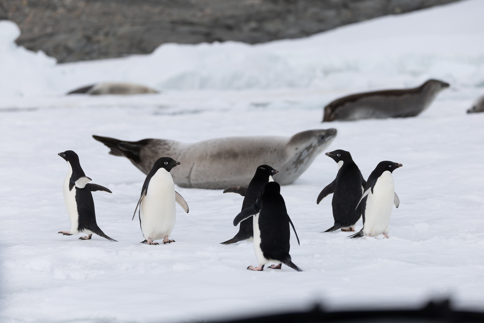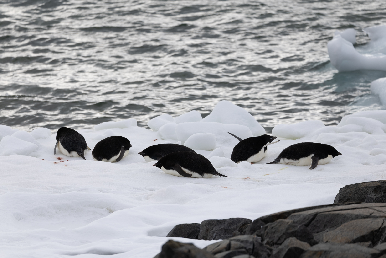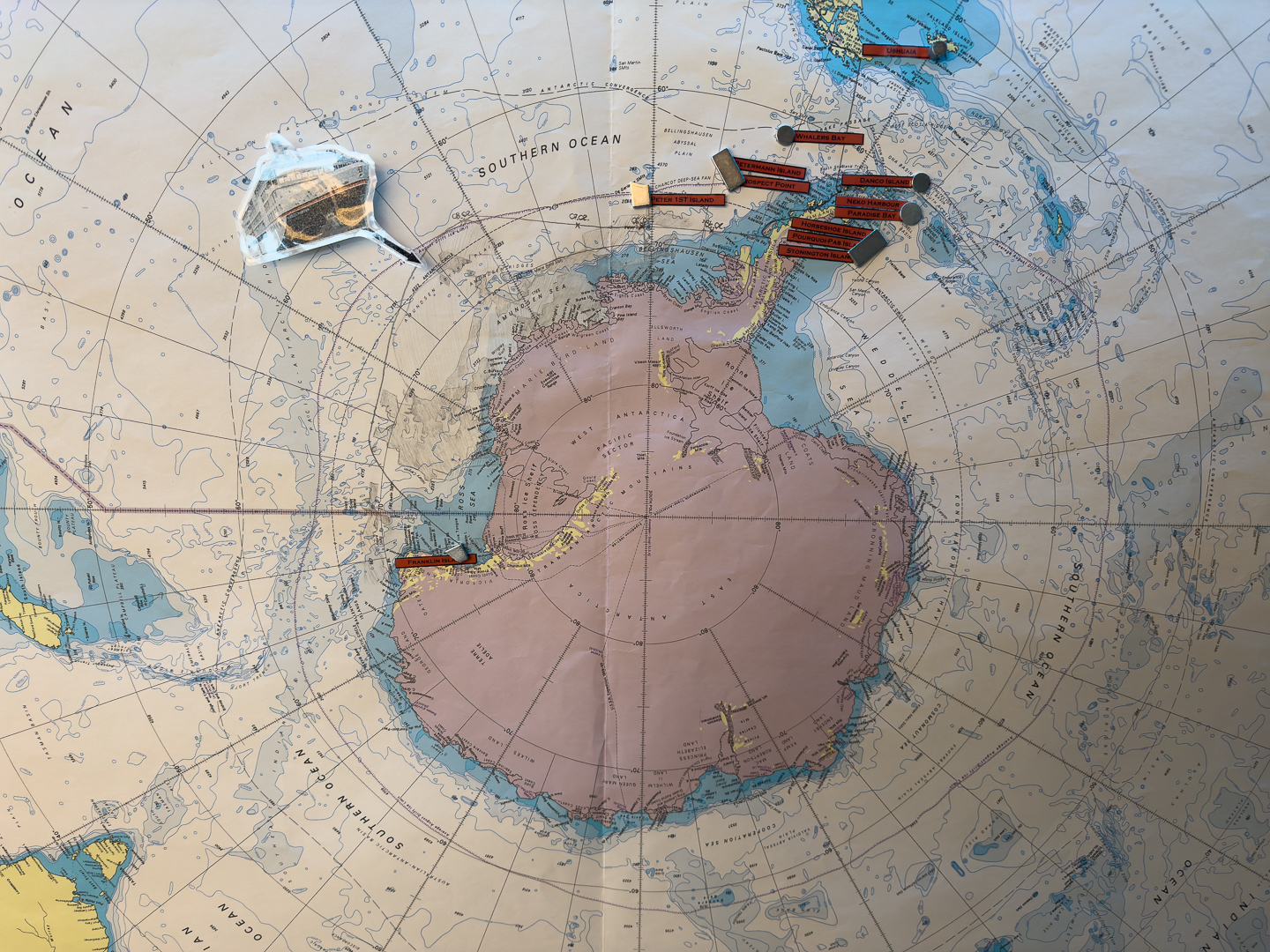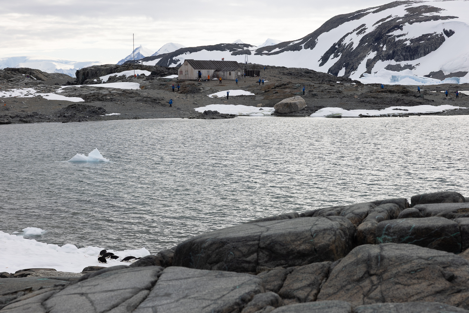 südlich des Polarkreises ist die Zahl der Schiffe schon deutlich ausgedünnt gegenüber dem nördlichen Teil der antarktischen Halbinsel. Wir haben im Bereich der Marguerite Bay die Inseln Horseshoe Island, Pouquoi Pas und Stonington als südlichsten Punkt besucht, sind an Jenny Island herangefahren und vor die britische Forschungsstatation Rothera ganz im Norden.